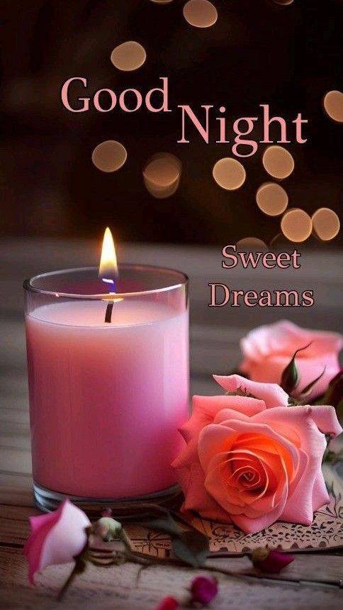 Good Night Sweet Dreams With Candle Burning Pink Rose Image